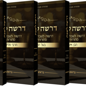 סדרת הספרים “דרשה לשבת” הינה לקט נבחר של דרשות קצרות לפרשת השבוע, אשר כתובות בשפה נעימה, נהירה וקולחת, כך שתתאים להבנה והנאה לכל באי שולחן השבת.