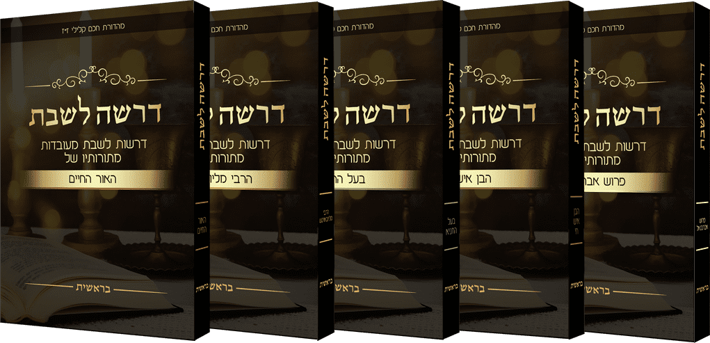 The series of books “Derasha LeShabbat” is a selected collection of short sermons for the week’s Torah portion, which are written in pleasant, flowing and fluent language, so that it will be suitable for understanding and enjoyment for everyone at the Shabbat table.
